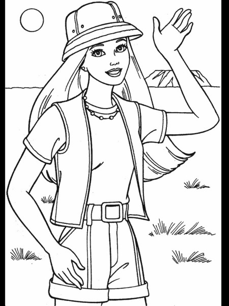 Barbie postanowiła wybrać się na safarii, pokoloruj po wydrukowaniu z nią ten obrazek.