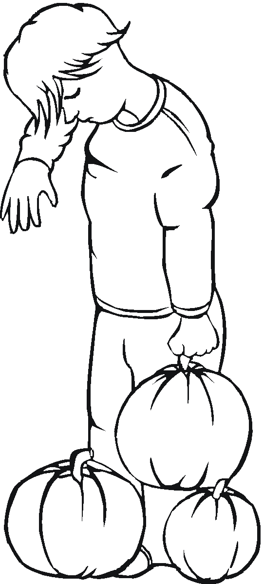 Chłopiec niesie dyniePrzez kolorowanki Chłopiec na obrazku wygląda na bardzo zmęczonego. Nic dziwnego niesie trzy wielkie dynie. Ciekawe co z nich zrobi? Może ozdoby na Halloween albo poprosi mamę by upiekła mu dyniowe ciasto. Pokoloruj obrazek najpiękniej jak potrafisz. Miłej zabawy!