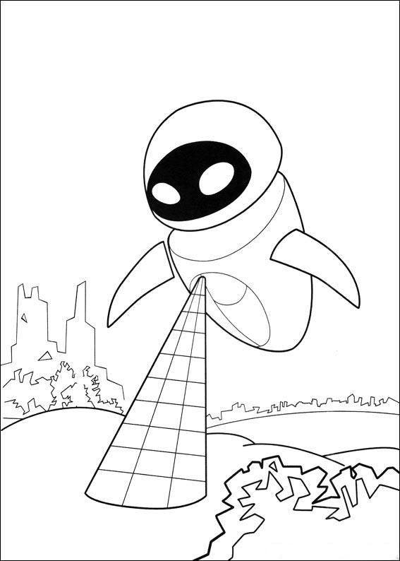 Ewa jest sondą. Jej zadanie polega na sprawdzeniu, czy na Ziemi nie rosną jakieś rośliny. Wtedy ludzie będą mogli na nowo zamieszkać na planecie. Zwróć uwagę na promień, którym prześwietla robot glebę. Pokoloruj obrazek. Miłej zabawy!
