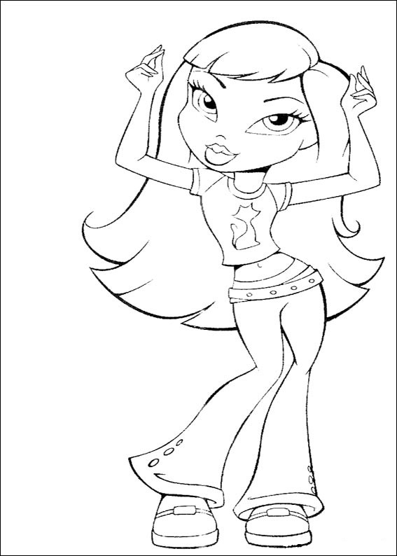 bohaterka bajki pod tytułem „Bratz” wygląda na bardzo zadowoloną. Czyżby dziewczyna była na jakiejś imprezie? Na obrazku widać jak tańczy. Dorysuj miejsce w którym znajduje się bohaterka i pokoloruj obrazek najpiękniej jak tylko potrafisz. Miłej zabawy!