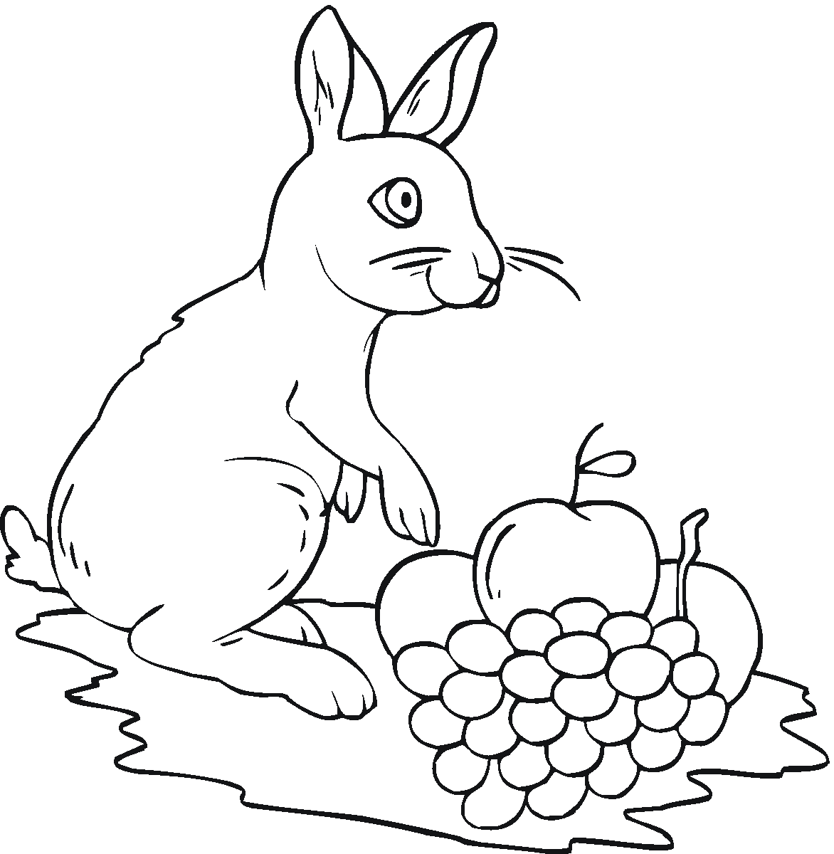 Winogrona i zajączekPrzez kolorowanki Na przepyszne winogrona skusił się też zajączek. Zwierzaczek zje nie tylko słodkie winogrona, ale też jabłuszka. Dzięki witaminom z owoców będzie miał dużo siły na zabawę. Wydrukuj i pokoloruj obrazek najpiękniej jak potrafisz. Miłej zabawy!